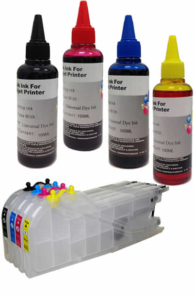 Kit 4 Cartucce Vuote Compatibile Brother Serie LC-123 Lunghe e Inchiostri da 100 ml.