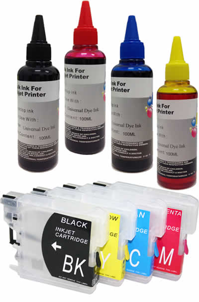 Kit 4 Cartucce Vuote Compatibile Brother Serie LC-985 + 4 Inchiostri da 100 ml.