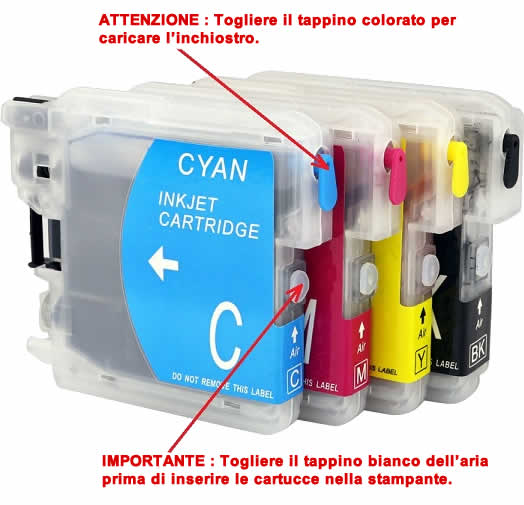 Kit 4 Cartucce Vuote Compatibile per Brother Serie LC980 e 4 Inchiostri