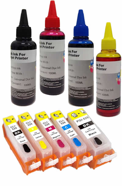 Kit 5 Cartucce Vuote Compatibile Canon serie PGI525-CLI526 + Inchiostri